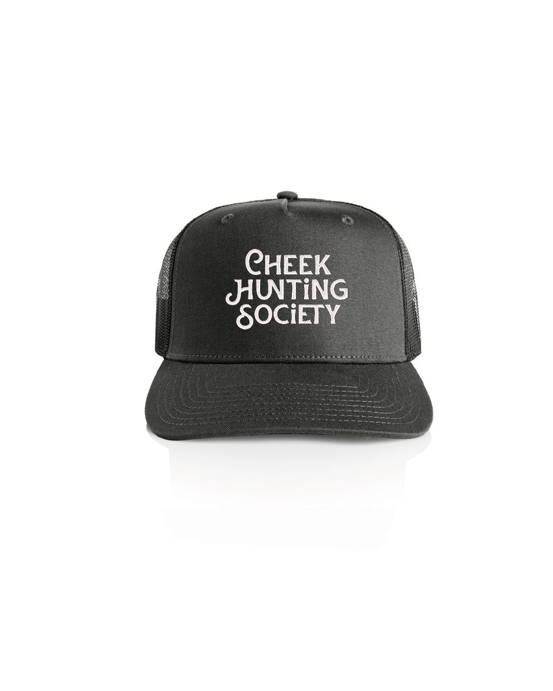 Coal snapback trucker with White embroidery on a durable polyester shell & perforated black mesh on back for maximum airflow.